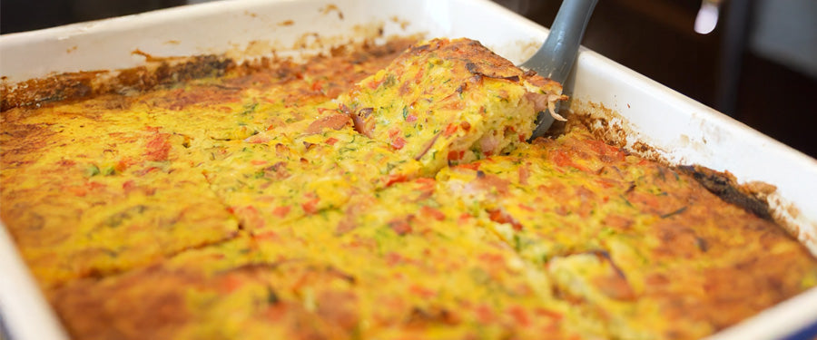 Mix everything in a bowl and pour into the oiled bakeware tray.