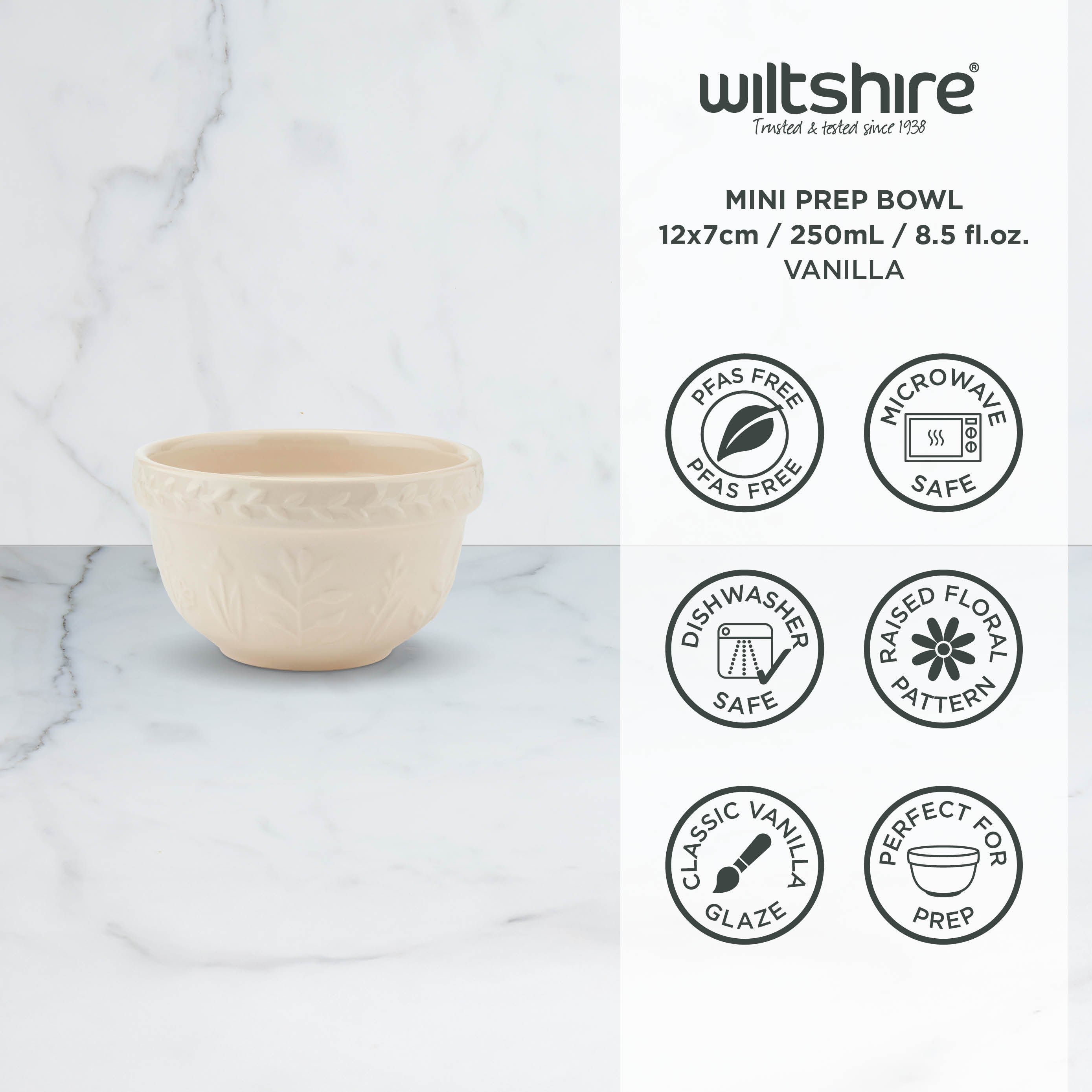 Meet the little bowls that bring everyday baking back to its beautiful best. Our Baking Traditions Mini Prep Bowl is the perfect size for keeping ingredients organised as you cook. Featuring a timeless raised floral pattern and finished in soft vanilla, it's as delightful to display as it is to use.