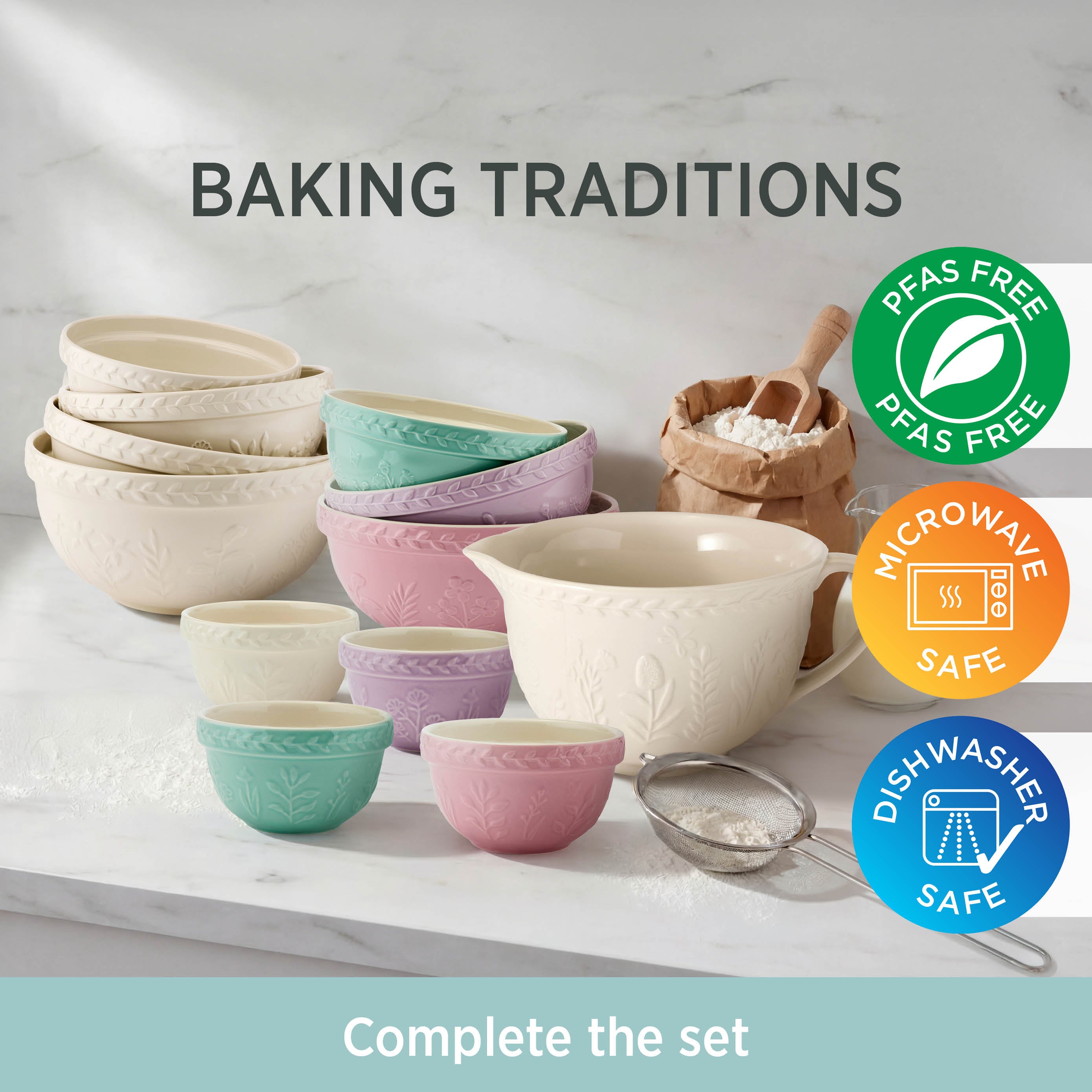 - After use, allow the dish to cool before washing. It is dishwasher safe; for stubborn residue, use a nylon scrubbing pad or soft sponge and avoid steel wool, harsh detergents, abrasive cleaners and sharp utensils so your Wiltshire mixing bowls continue to perform beautifully.