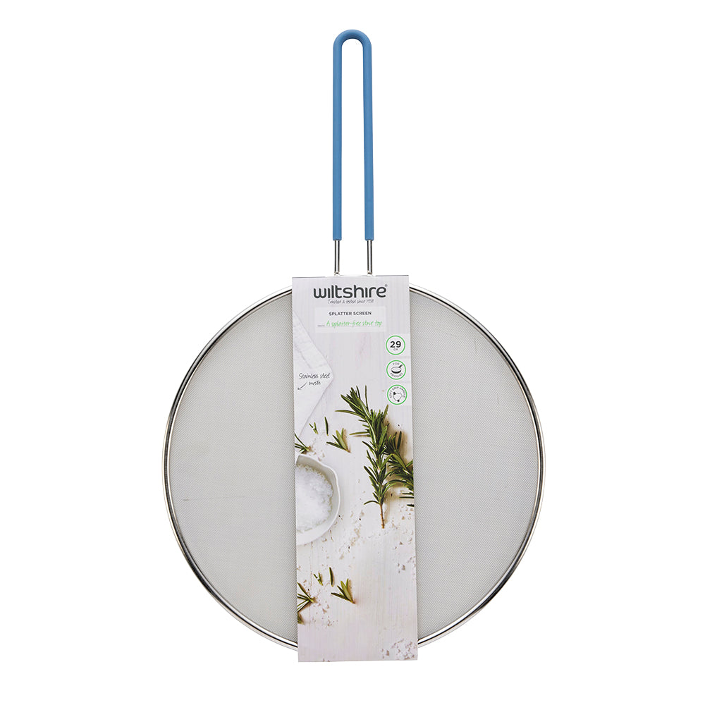 Keep your stovetop clean while you cook with the Wiltshire Stainless Steel Splatter Screen. Designed to fit standard 29cm pans, it features durable stainless steel mesh and a comfortable silicone grip handle to reduce mess and make clean-up easy.