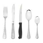 Made from high quality stainless steel, it’s strong enough to last through breakfast, lunch and dinner, seven days a week. With sixteen pieces, its the perfect set for you and your family to use every day. And because good looks just add to taste, you’ll love the hammered finish handles, and the mirror polish adds a touch of glam to every day dining.