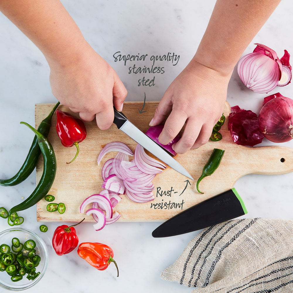 Cheese prefers it. Even fancy fruit and herbs favour it. But don’t let its size fool you. The Staysharp Utility Knife is your handy, all-purpose knife for those fiddly food prep jobs.