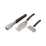 - Flat edge removes burnt-on food and fat from hot plate surface