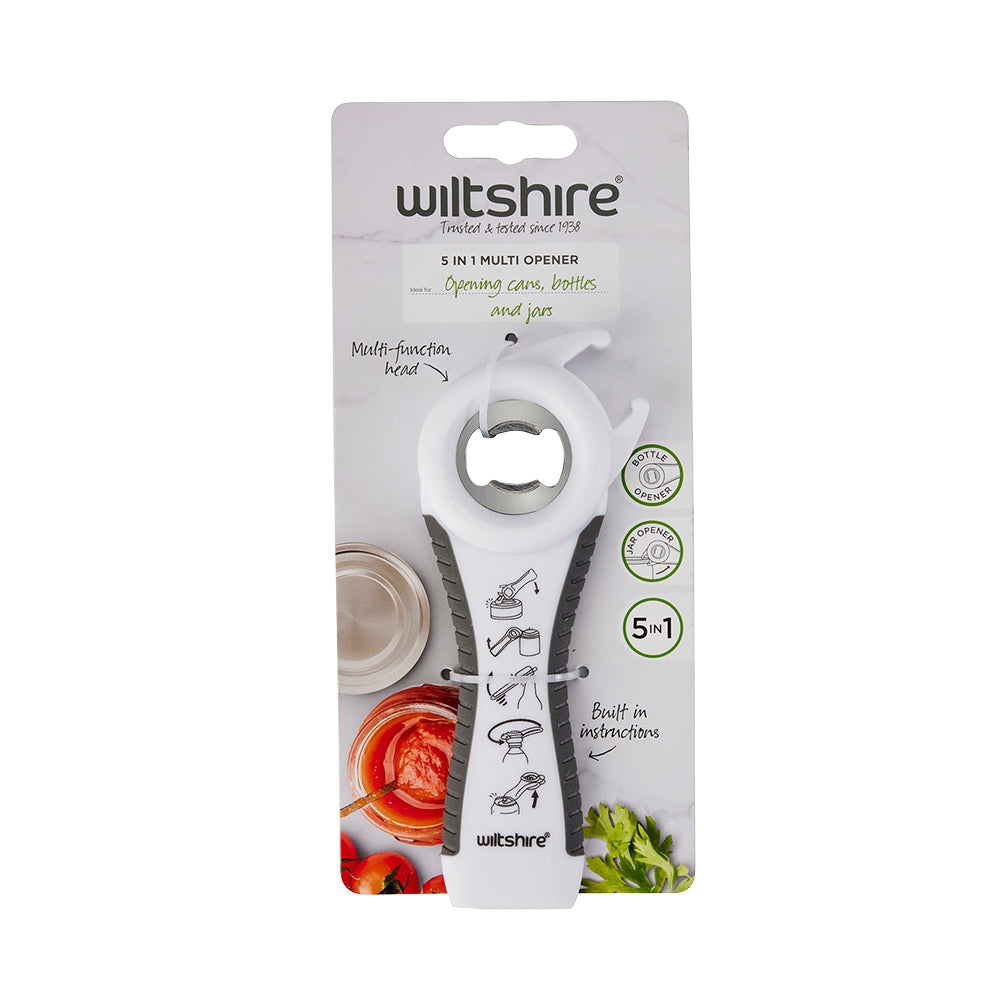 The Wiltshire 5 in 1 Multi Opener is your saving grace to help you open cans or bottles with very little effort.
